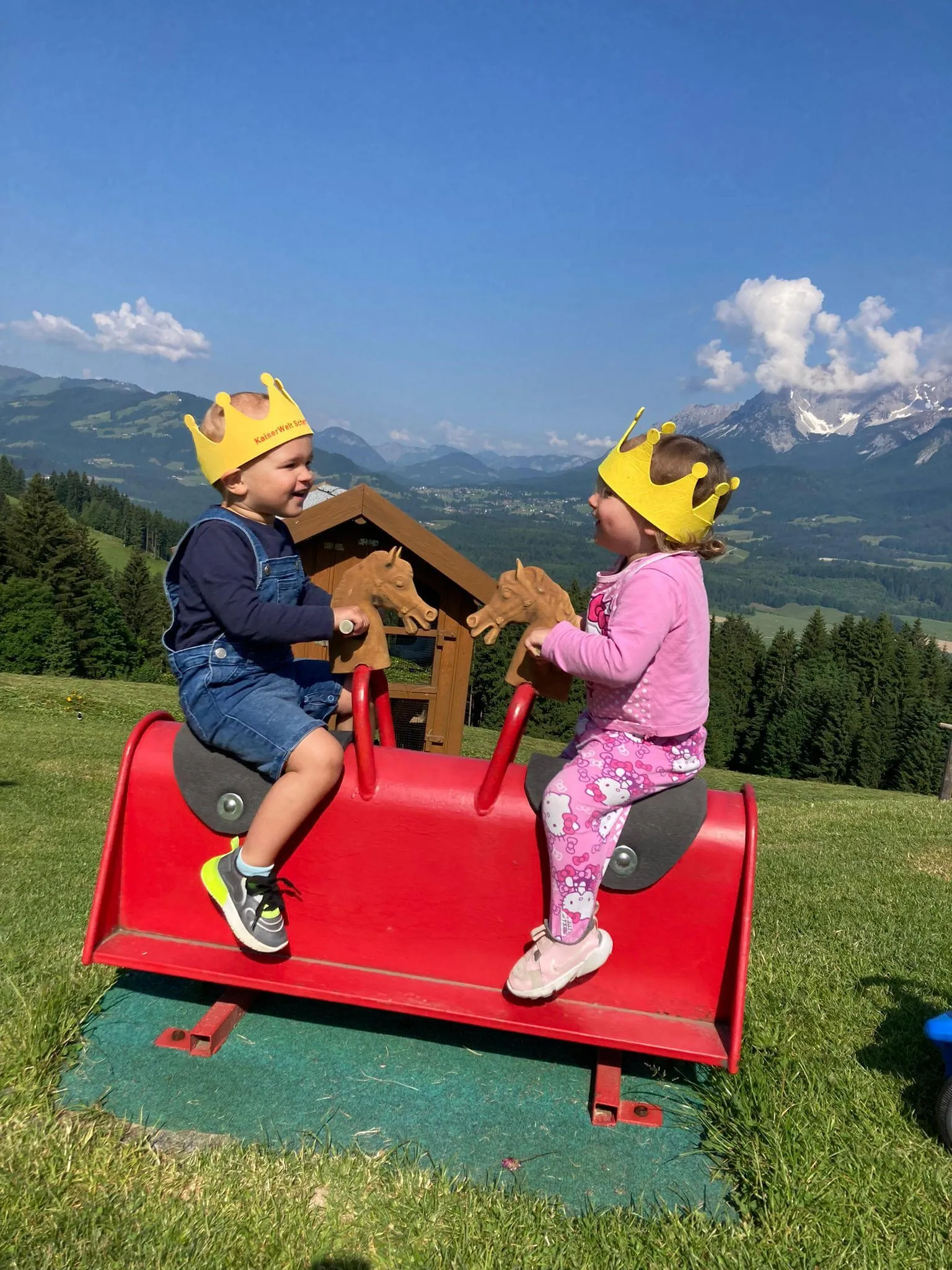 Willkommen auf unserem Spielplatz im Restaurant am Hirschberg! Während Sie die herrliche Bergwelt genießen, können sich die Kleinen auf unserem sicheren und fröhlichen Spielplatz austoben. Klettern, schaukeln und lachen – hier ist für Spaß gesorgt, während Sie entspannt speisen. Freuen Sie sich auf eine genussvolle Zeit für die ganze Familie!